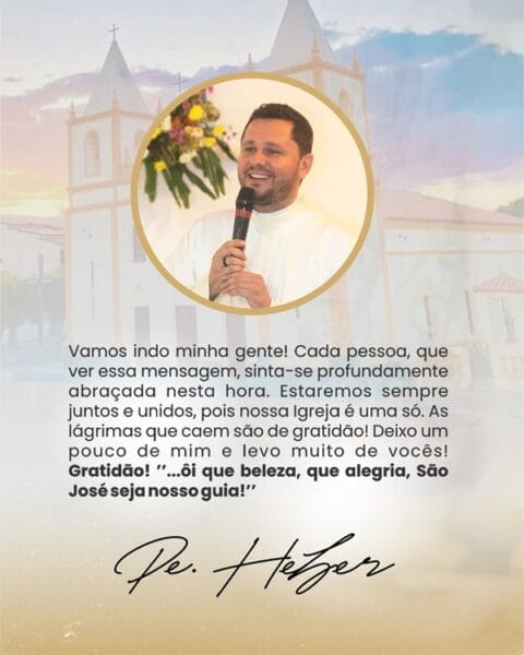 - Padre Heber publica mensagem de despedida e entristece fiéis em sua saída da paróquia de Carinhanha - 14/01/2026