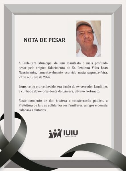- Prefeitura de Iuiu emite nota de pesar pelo falecimento de homem atropelado no município - 28/10/2025