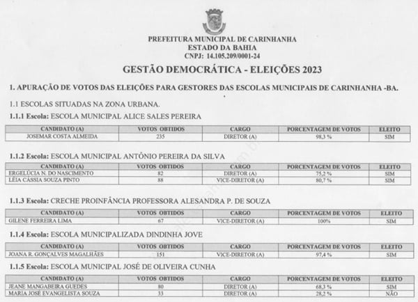 Conforme as apurações, veja abaixo os diretores e vice-diretores eleitos para as escolas municipais da sede: